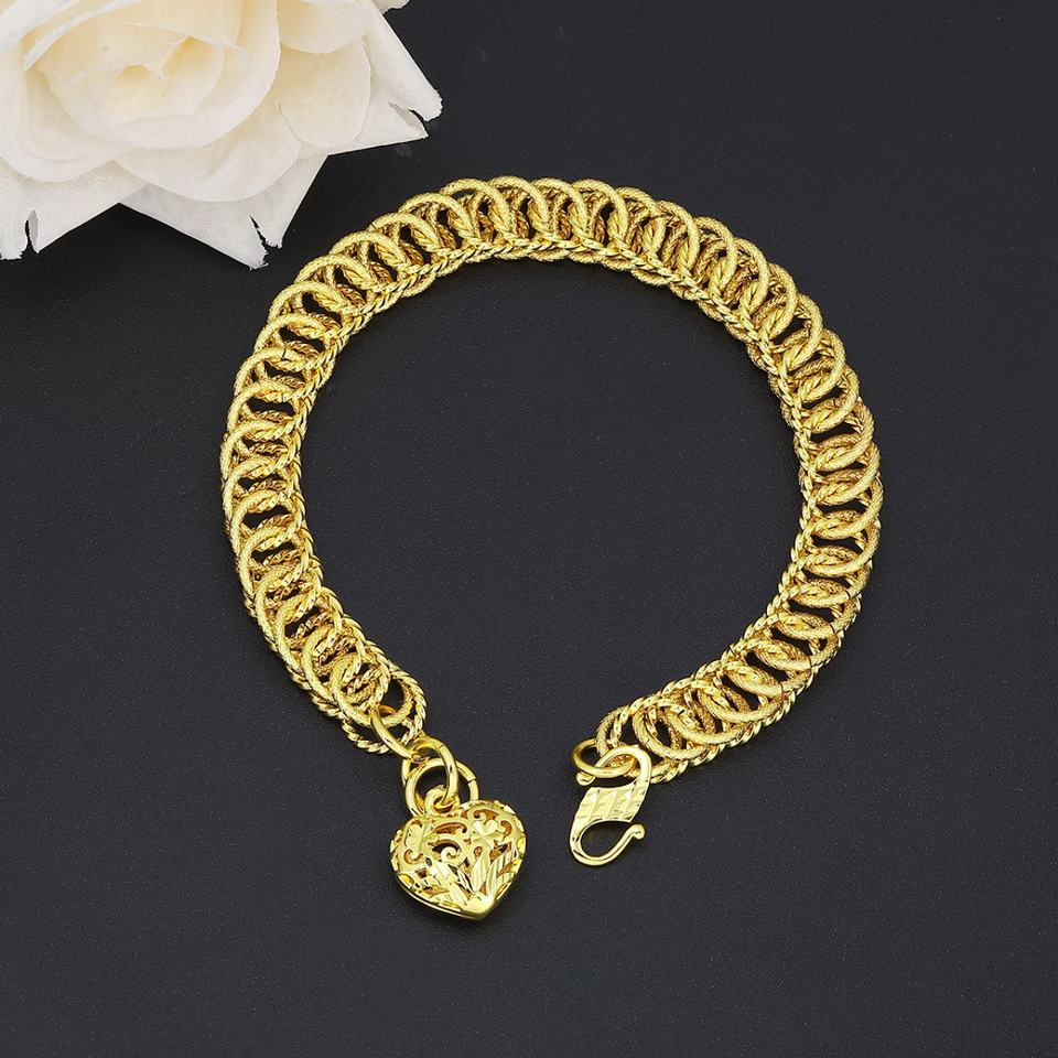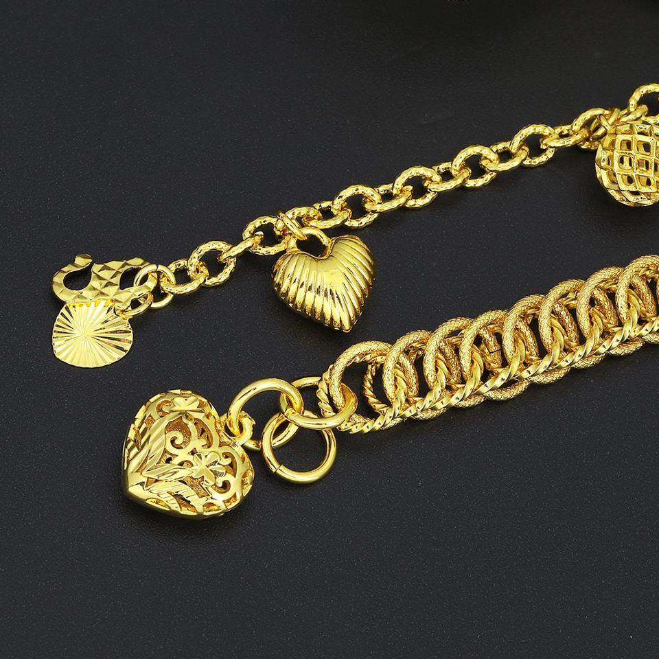 JXX Trendy 24K Gold Plated Brass Heart Charms Pendant Jewelry for Unisex Chain & Link Bracelets