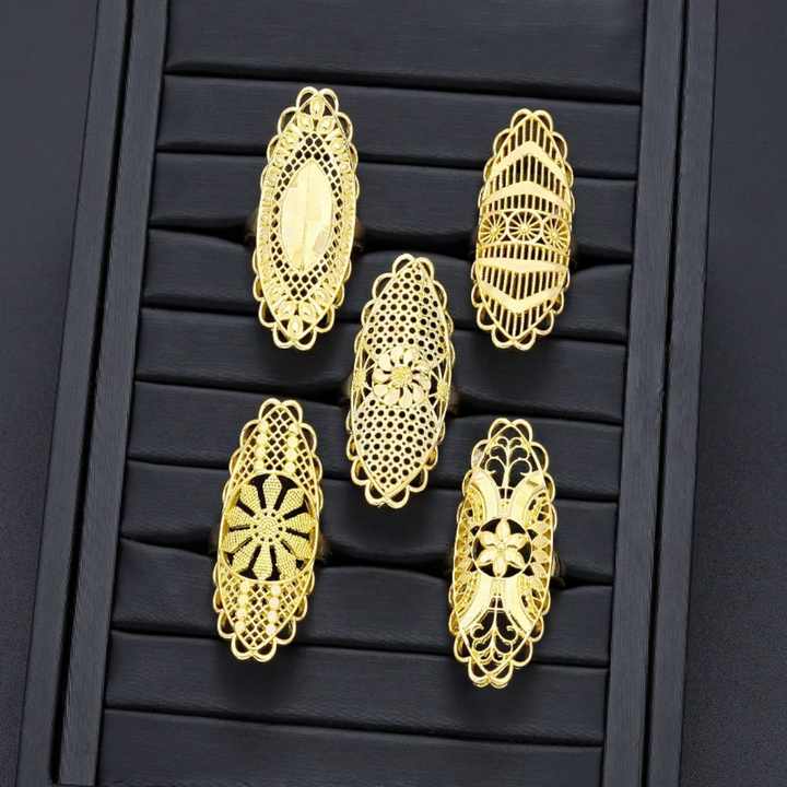 JXX Wholesale Price Unique Design 24K Gold Plated Brass Rings Arabic Style Trendy Jewelry for Women for Engagement or Party