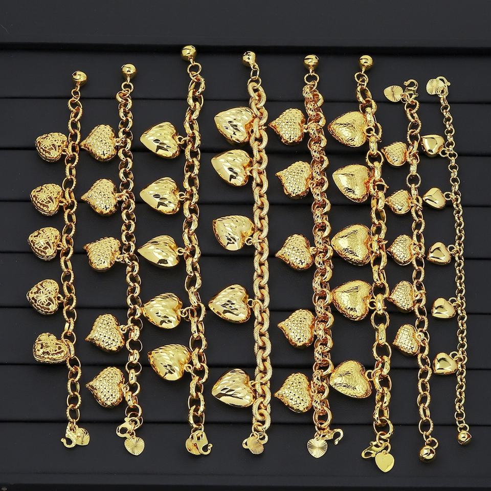 JXX Wholesale Trendy Unisex 24k Gold Plated Brass Chain & Link Heart Shaped Charms for Bracelet Jewelry Making