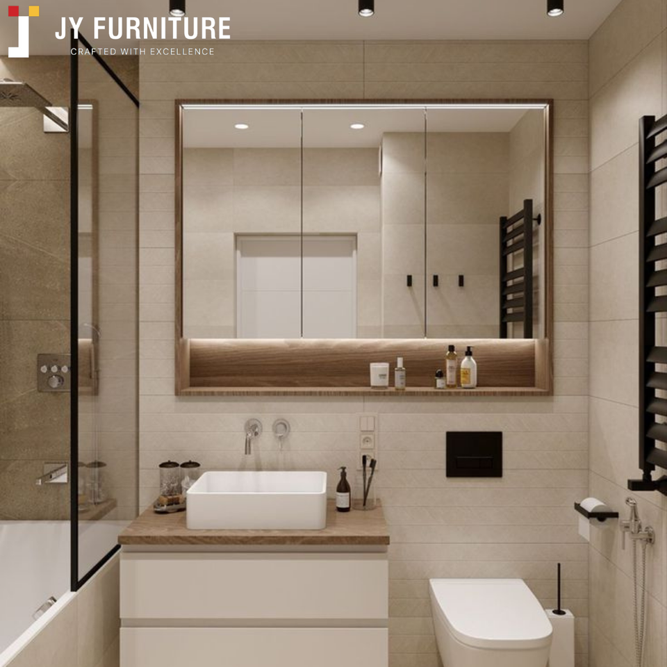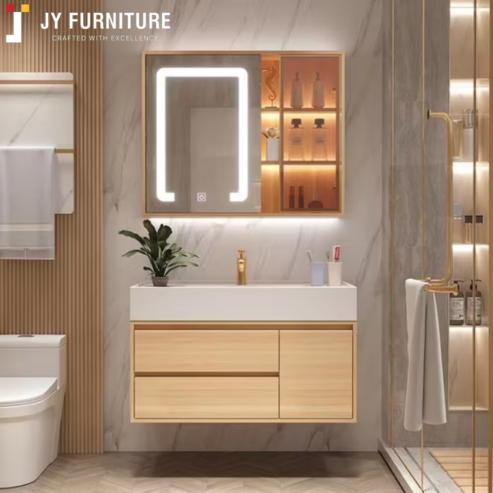JY Project Customized Furniture Modern RTA Particle Board Dresser USA Standard Trendy Small Bathroom Vanity with Sink Lighted