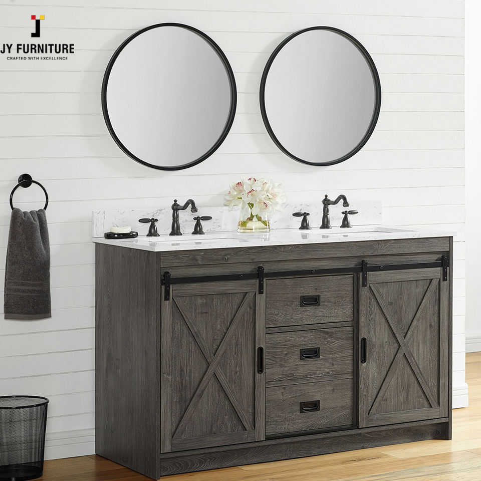 JY Vietnam Modern Freestanding Double Vanity Sink Bathroom Melamine Finish Hardwood Carcass for American Projects