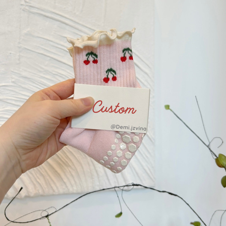 JZVINA Women's Grip Socks Ruffles Jacquard Pattern Anti-Slip Breathable Seamless for Pilates Yoga Barre Reformer OEM Service