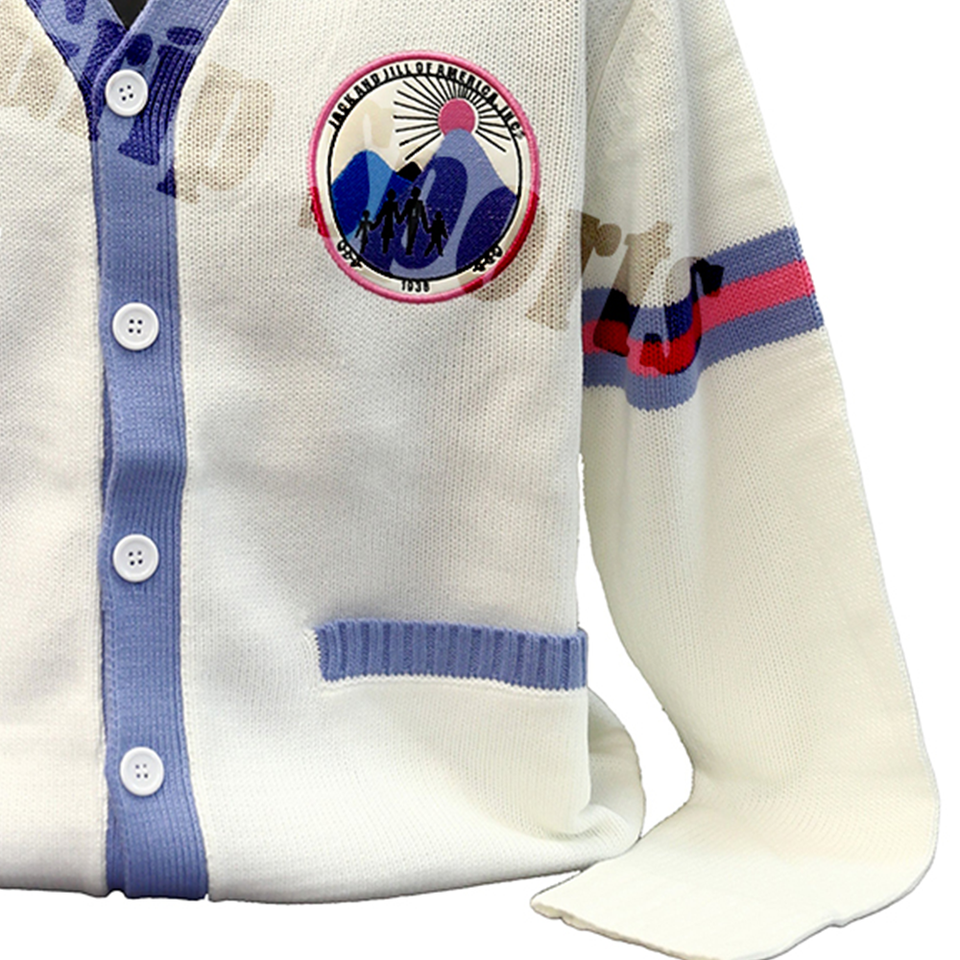 Jack and Jill White Cardigan Sweater | Custom Varsity Knitwear Manufacturer | Trusted US & International Supplier