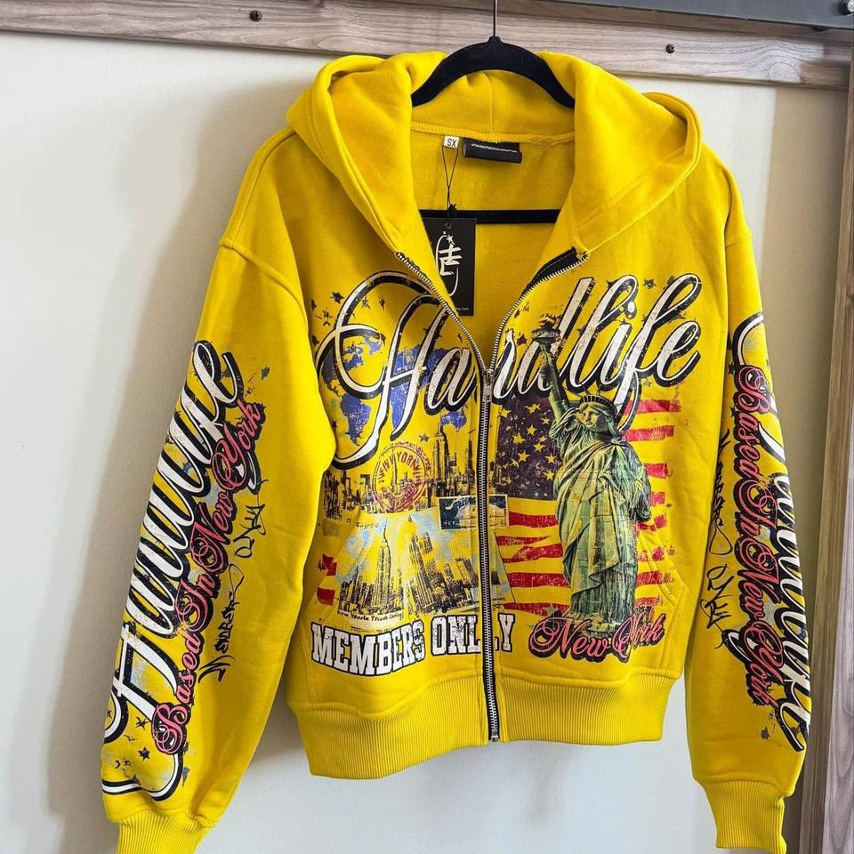 Jacket Crystal Rhinestone Double Zip up Hoodie MenCustom Vintage Washed Fleece French Terry Heavyweight Thick Zipper boxy hoodie