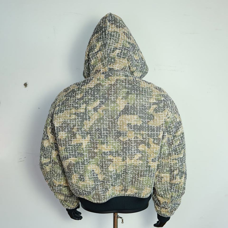 Jacket Manufacturer Customized Cotton Retro Double Zipper Warm Quilted Camouflage Winter Bomber Jacket with Hood Men's Jacket