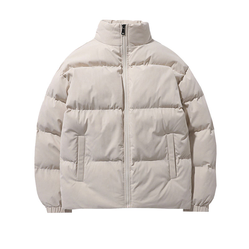 Men's Winter Quilted Padded Jacket Solid Color Sustainable Outdoor Puffer with Stand Collar and Windproof Pattern Decoration