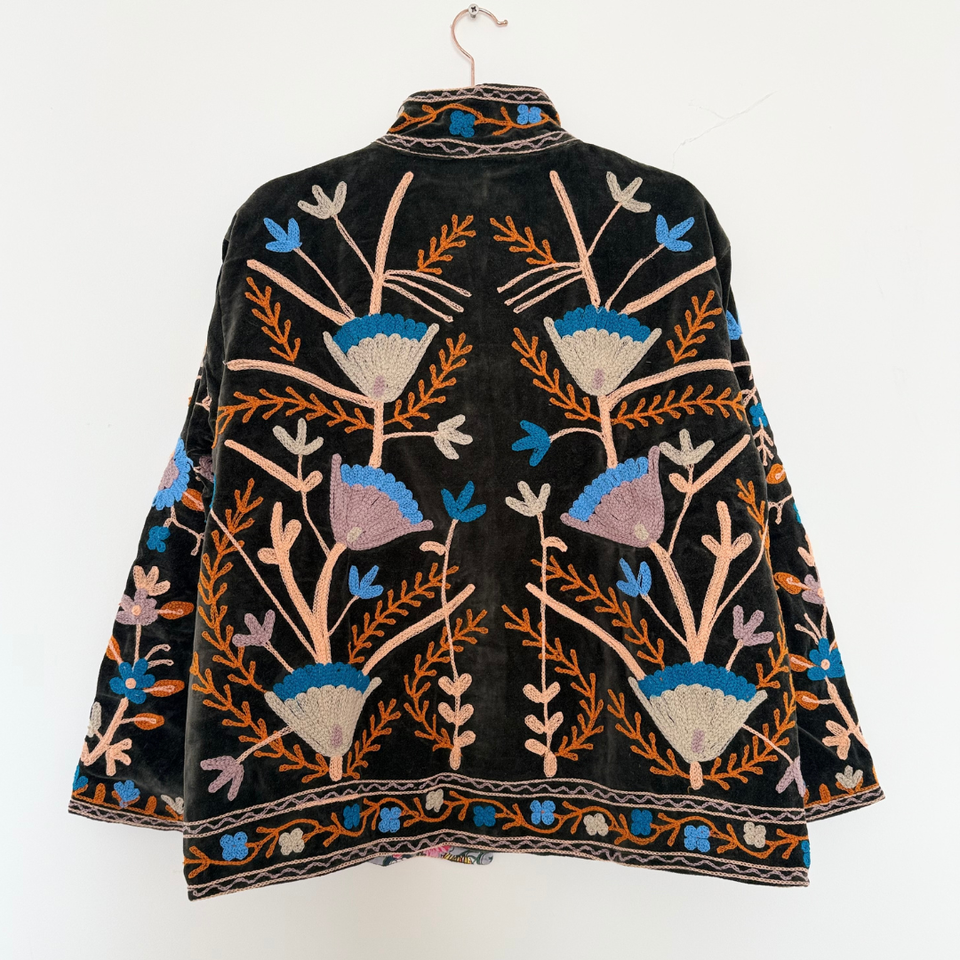 Jacket Velvet Suzani Embroidered Autumn/Winter Quilted Eco-Friendly Cotton Lining Unisex Coat Indian Style Plus Size Women's