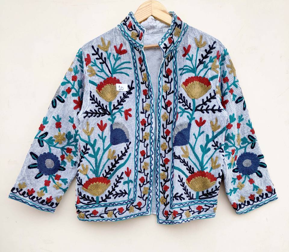 Jacket Waffle Suzani Winter Short Jacket Embroidered Jacket One Size Party Wear Coat