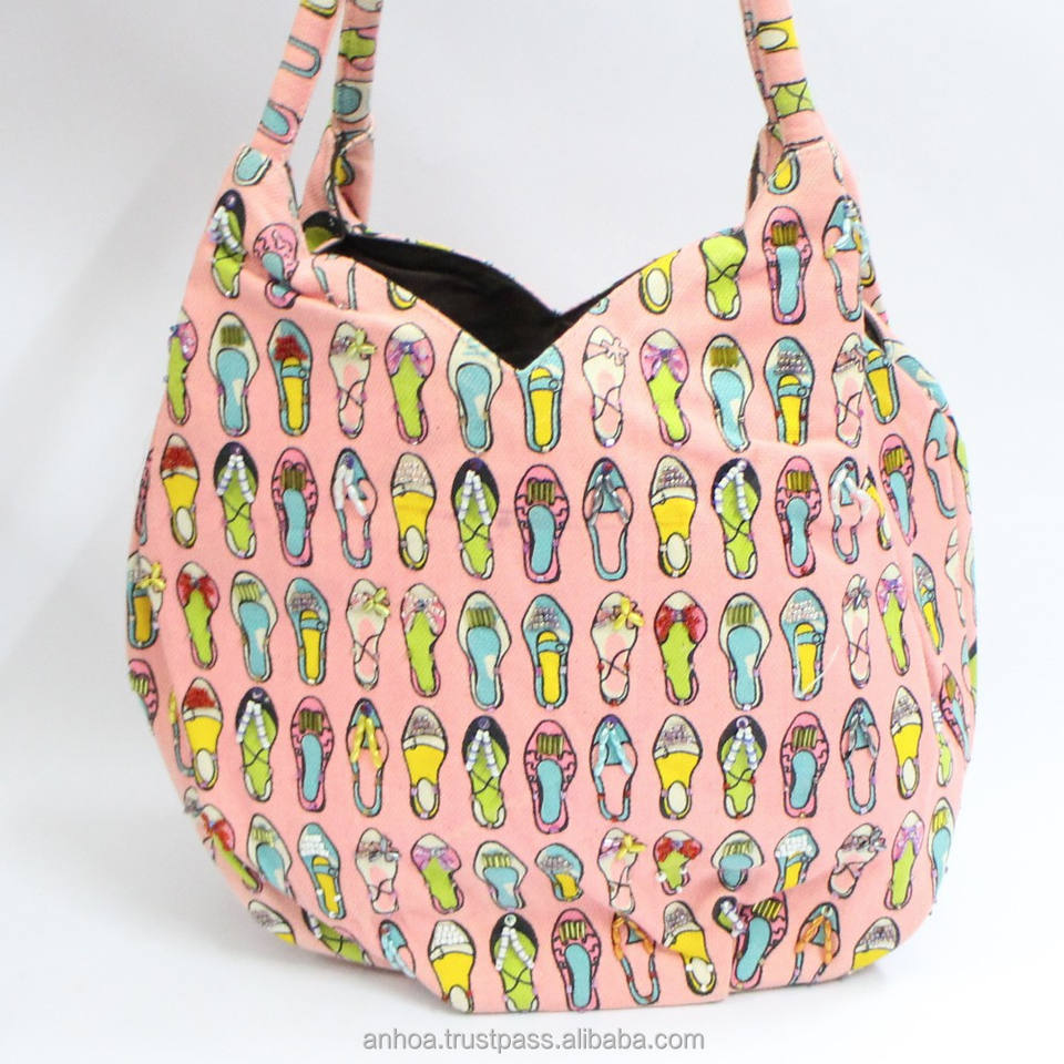 Cotton Tote Bag Green Fabric with Heat Transfer Printing Eco-Friendly 2 Long Handle Medium Size for Daily Use or Advertising