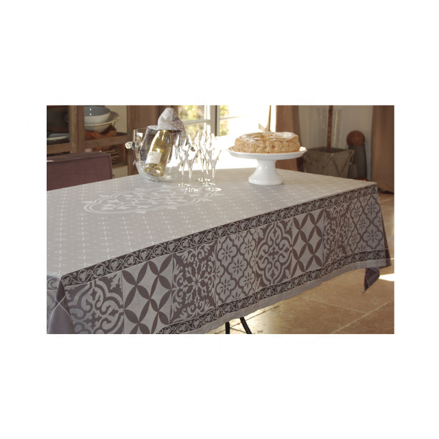 Jacquard Woven Dark Grey 100% Cotton Embroidered Tablecloth GOTS Certified Durable 8ft Size Machine Washable OEM ODM Service