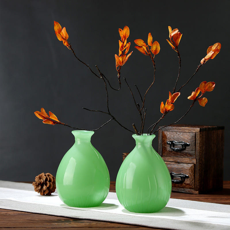 Jade Green Relief Single Hydroponic Bottle Classic and Modern Design Large Round Mouth Vase with Small Mouth for Wedding