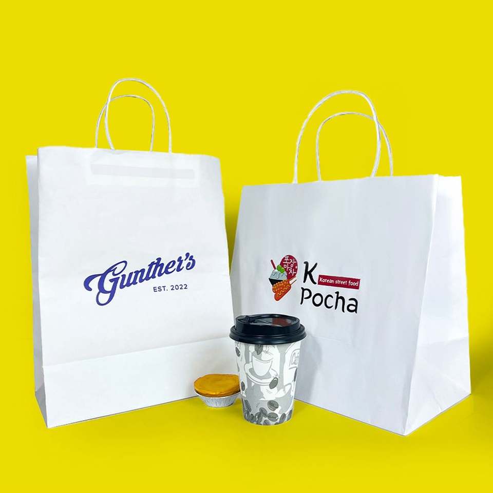 Jahoo Pack Factory Price Low MOQ Custom Personal logo Printing Take Away Biodegradable White and Kraft Paper Bag with Handle