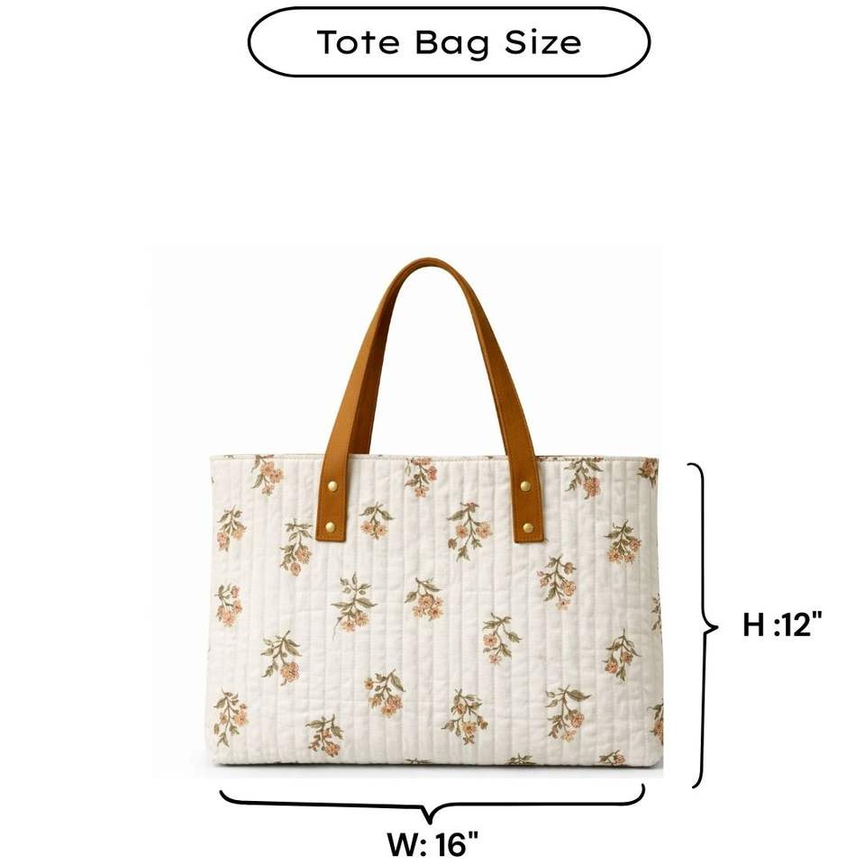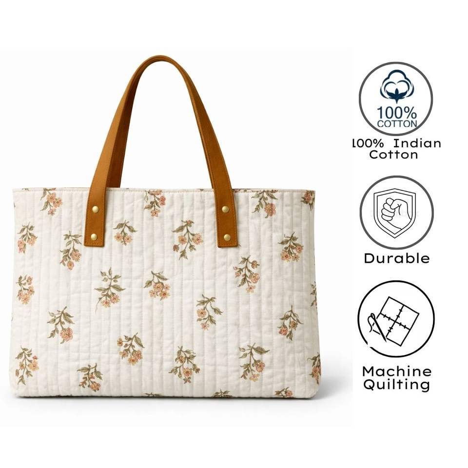 Jaipur Artisan Handmade Eco-friendly Boho Block Print Structured Quilted Canvas Tote Bags Leather Handle Travel Friendly Durable