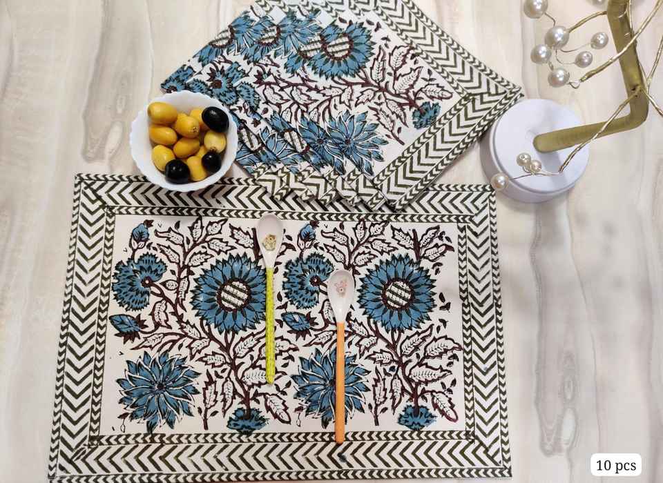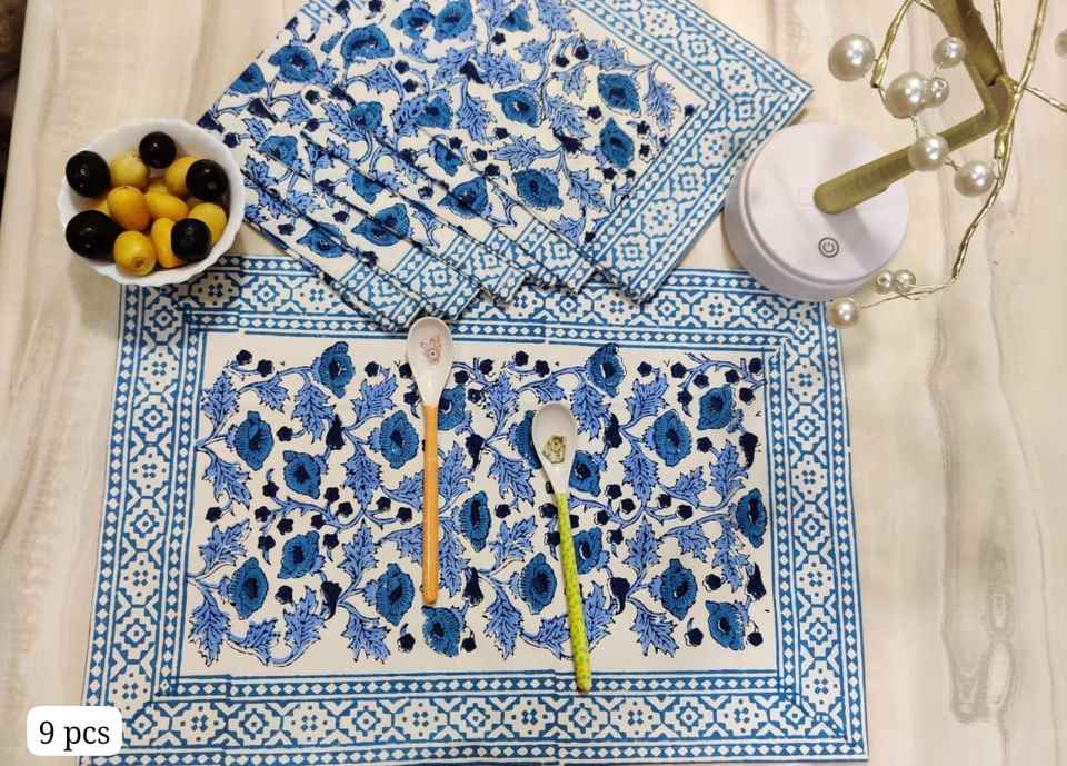 Jaipur Handcrafted 100% Cotton place mats Traditional Block Printed Dining Table Place mats Ethnic Indian Cotton Dining Mats