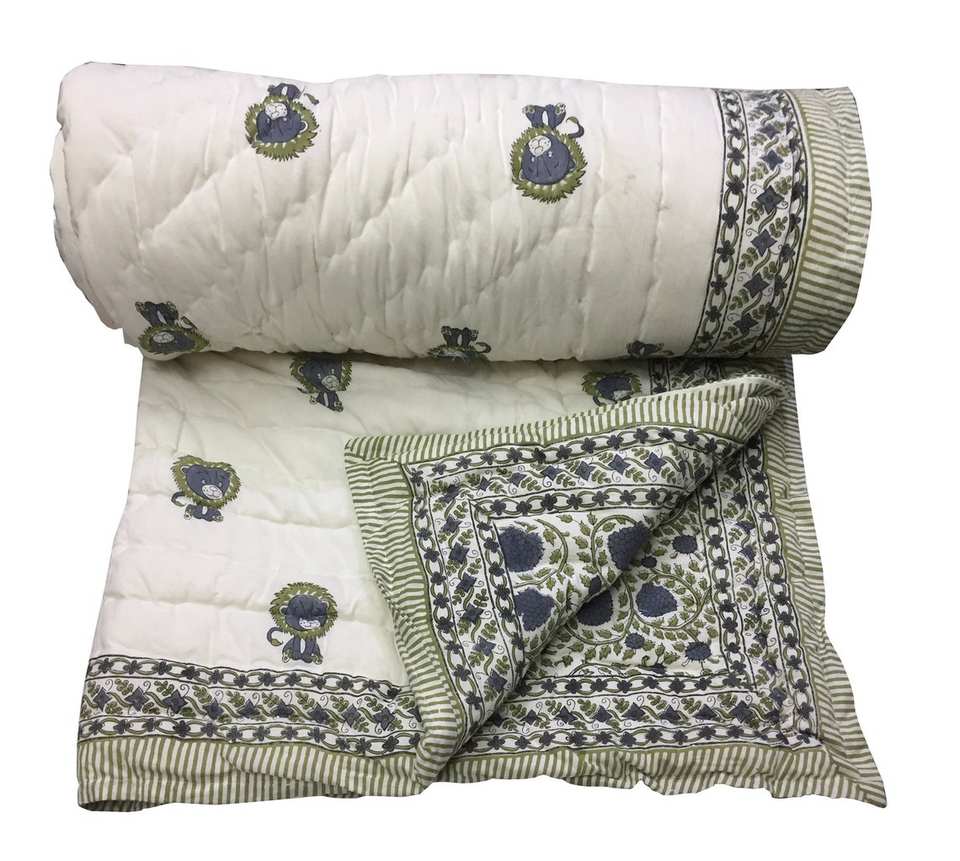 Jaipur Quilt 100% Cotton Hand Block Print Reversible Kantha Queen US King Blanket Handmade Indian Block Print for Hotels