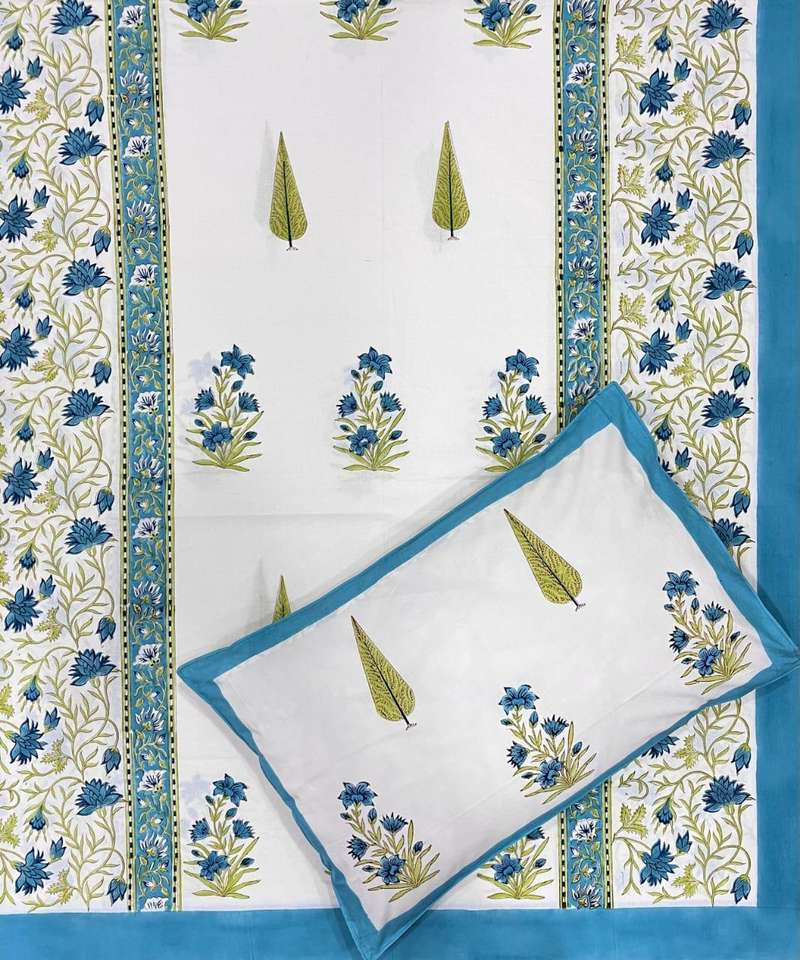 Jaipuri 100% Cotton Hand Crafted Bedsheet With Pillow Cover Set Hand Block Printed with Artisan-Made Bedsheet Border Design