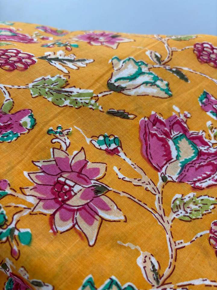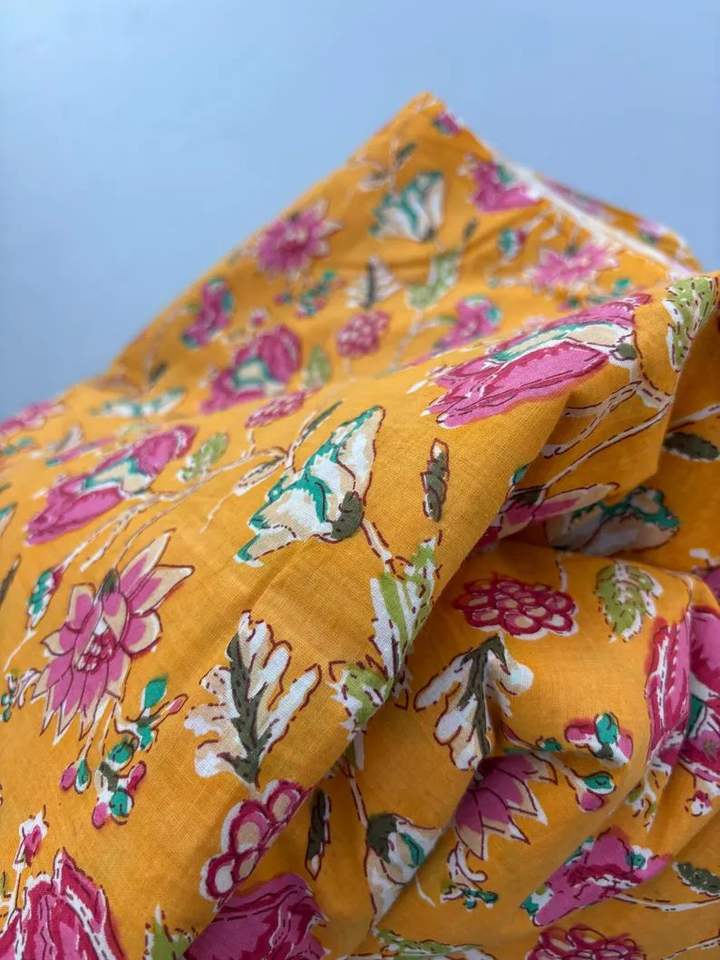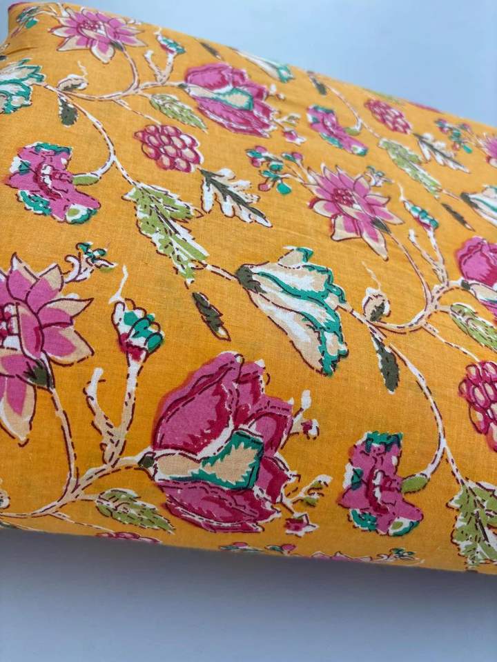 Jaipuri Cotton Fabric for Women's Dresses Kids' Crafts Handmade Quilt Fabric Loose Print Screen Print Design for Quilting Fabric