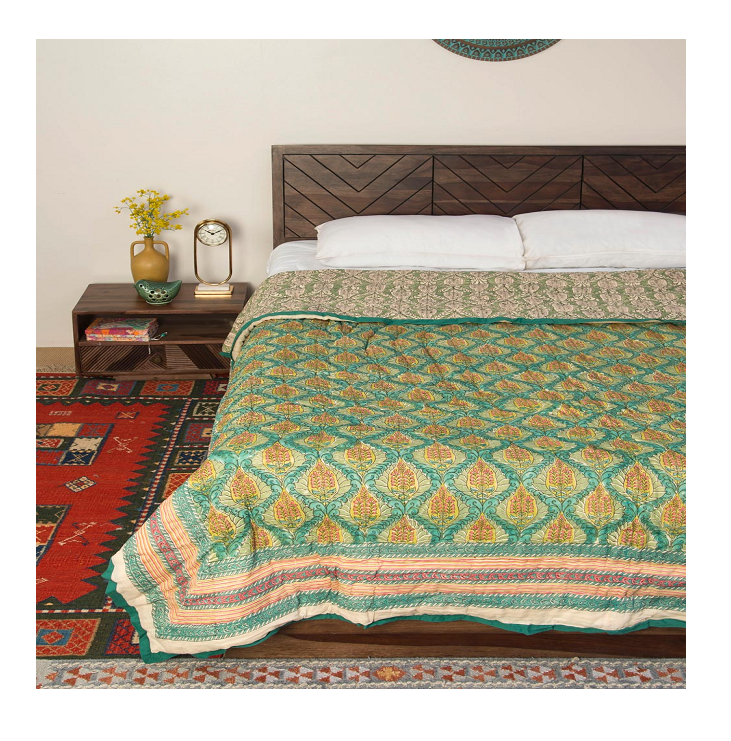 Jaipuri Design Handmade Indian Block Print Bed Cover Set 3 Pcs Cotton Filling-for Wholesale