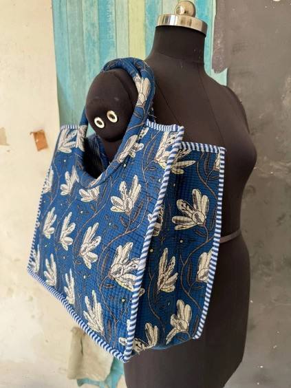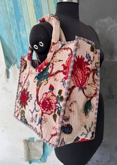 Jaipuri Floral Print Quilted Shopping Bag Indian Cotton Bags