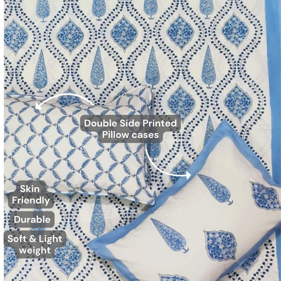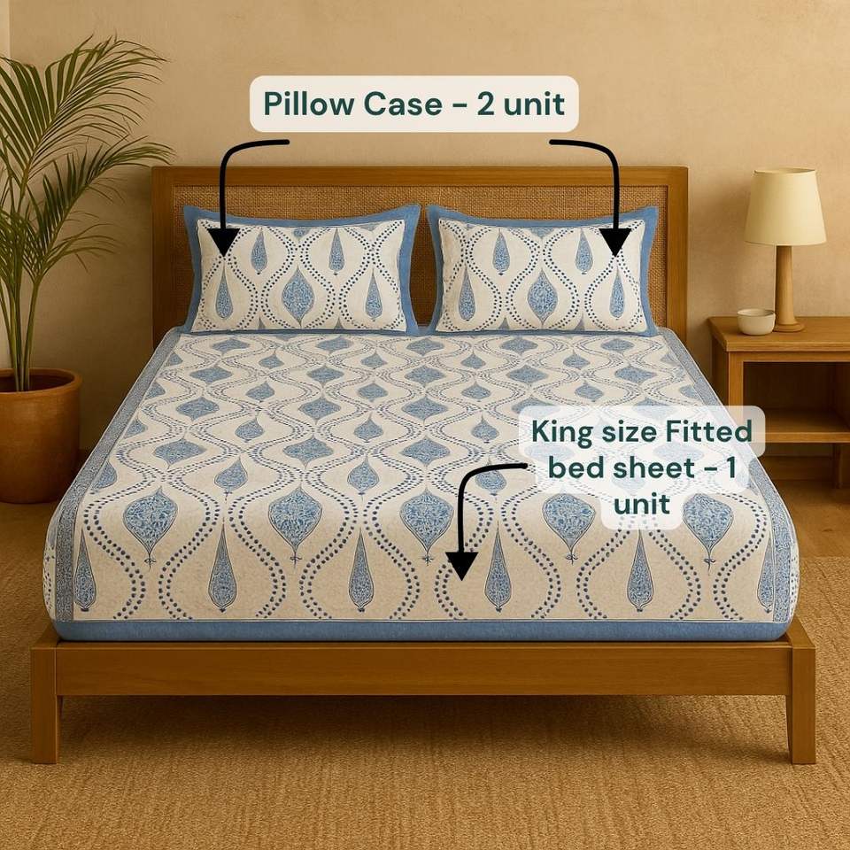 Jaipuri Hand Block Printed Organic Cotton Floral Print 200TC Durable Eco-Friendly Fitted Sheet Set for Home Hotel Wedding Use