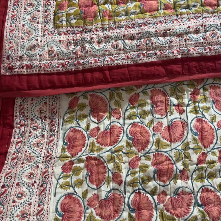 Jaipuri Handblock 100% Cotton Block Print Quilted Luxury Oversized Throw Blanket Soft Bed Coverlet Cotton Fabric for Dressmaking