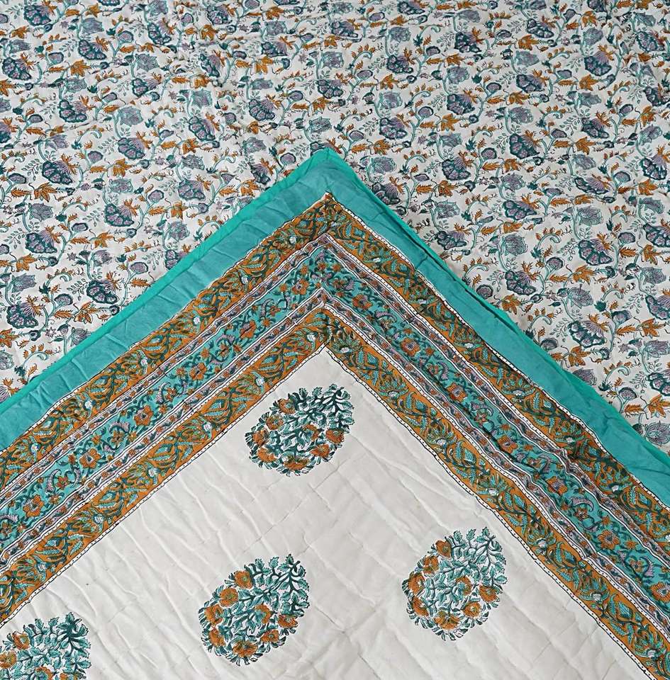 Jaipuri Handmade Quilt Indian Hand Block Printed Reversible Razai Cotton Voile Handmade Quilt Patch Work Quilt
