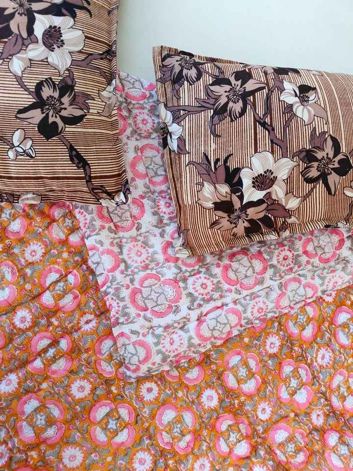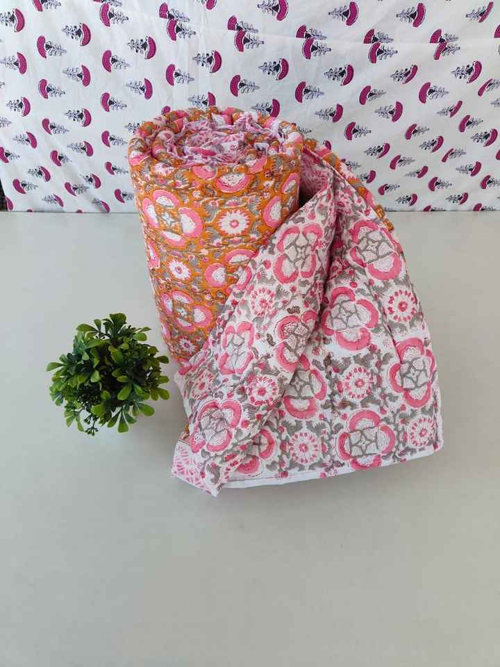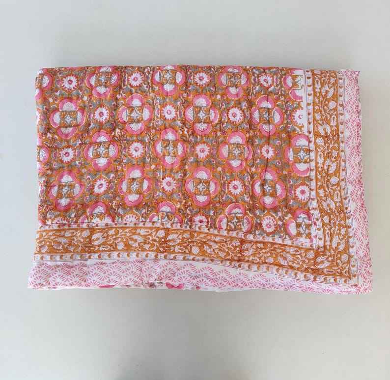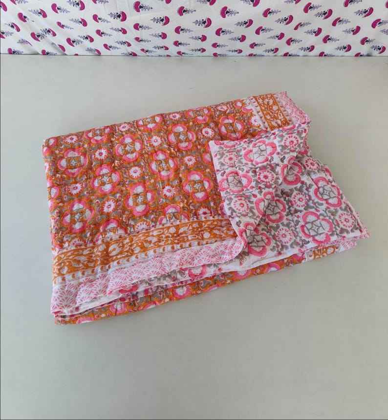 Jaipuri Razai Indian Quilt Single Queen King Block Printed Reversible Blanket