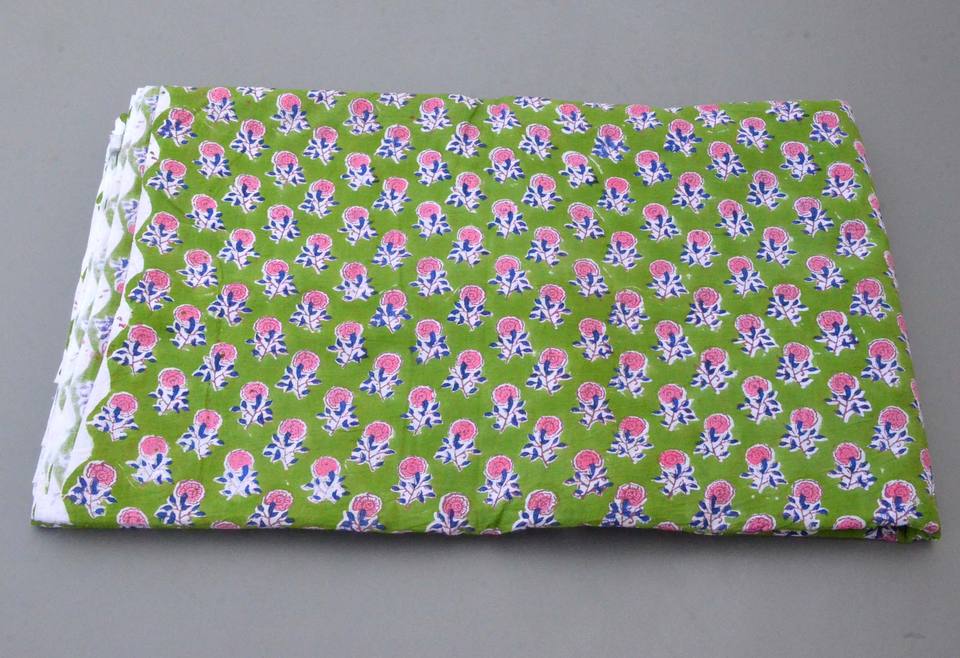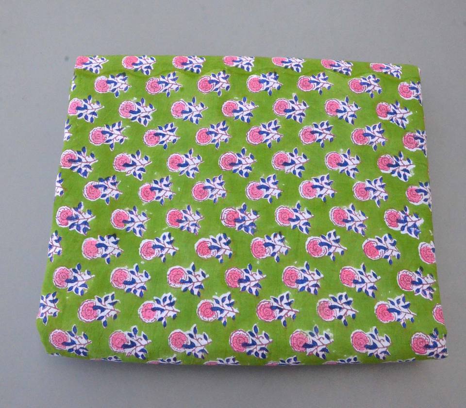 Jaipuri style Green Floral Hand Block Printed Cotton Fabric | Soft Indian Cotton Yardage for Clothing Home Décor and many more.