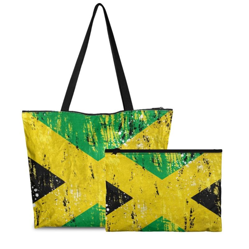 Jamaica Flag Pattern Women Shoulder Bag Dropshipping POD Dupont Paper Carryall Foldable Eco-friendly Sets 2pcs Handbag for Lady