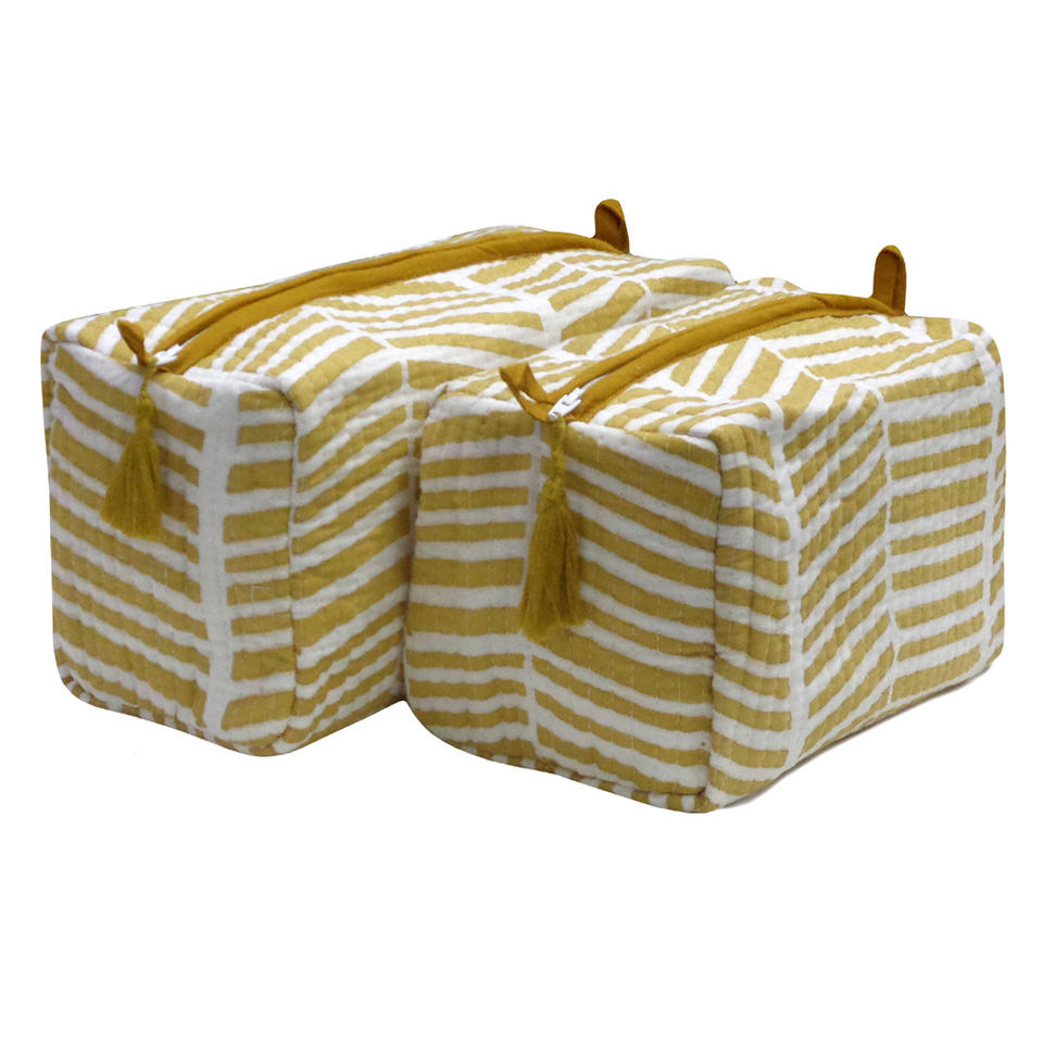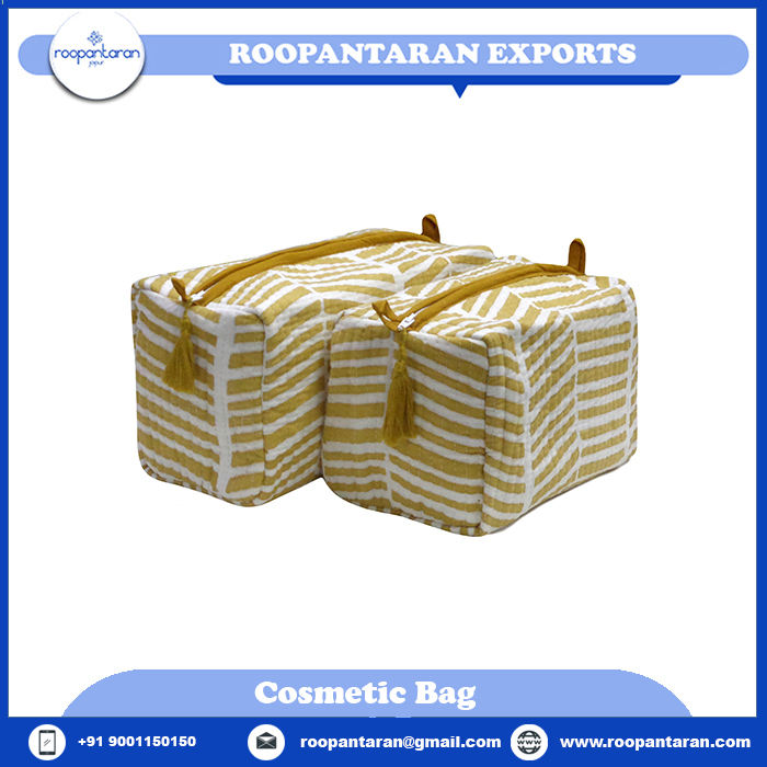Jamun Phool Hand Block Printed Cotton Striped Pattern for Bag Set with Zipper Closure Fashion Cosmetic Bags For Bulk Supply