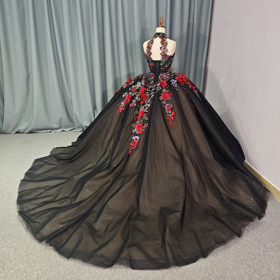 Jancember 1250 Occasion Black Halter Evening Party Dresses With 3d Red Flower