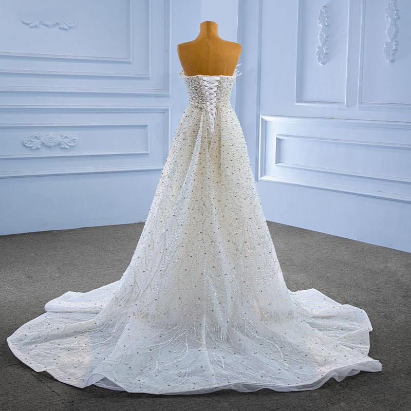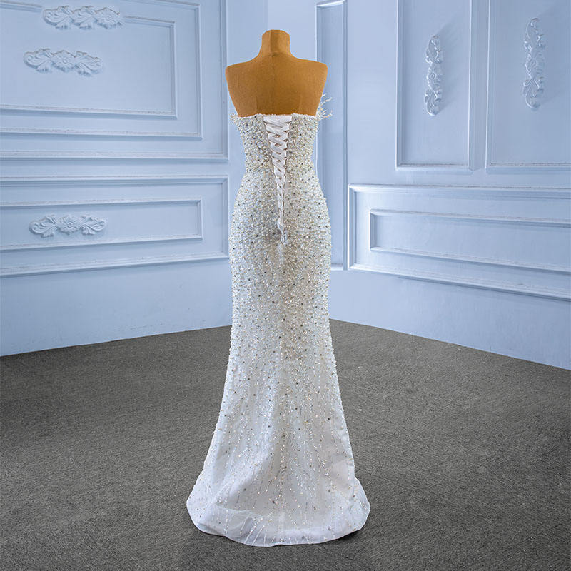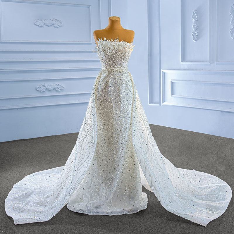 For 222205 Maternity Natural Waist Ruffles Pleat Heavily Beaded Pearls Mermaid Wedding Gowns with Chapel Train Party