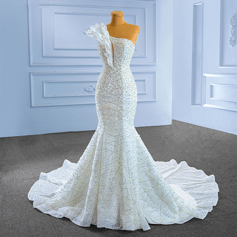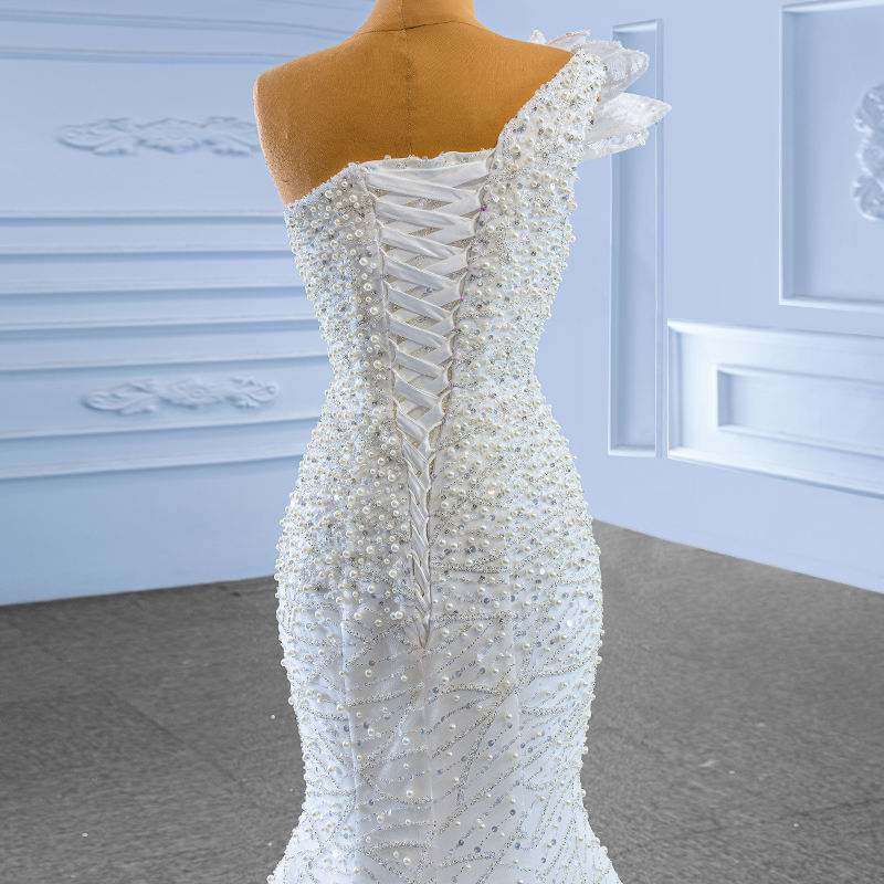Jancember 222206 Luxury Pearls Sequins One Shoulder Mermaid Wedding Gowns