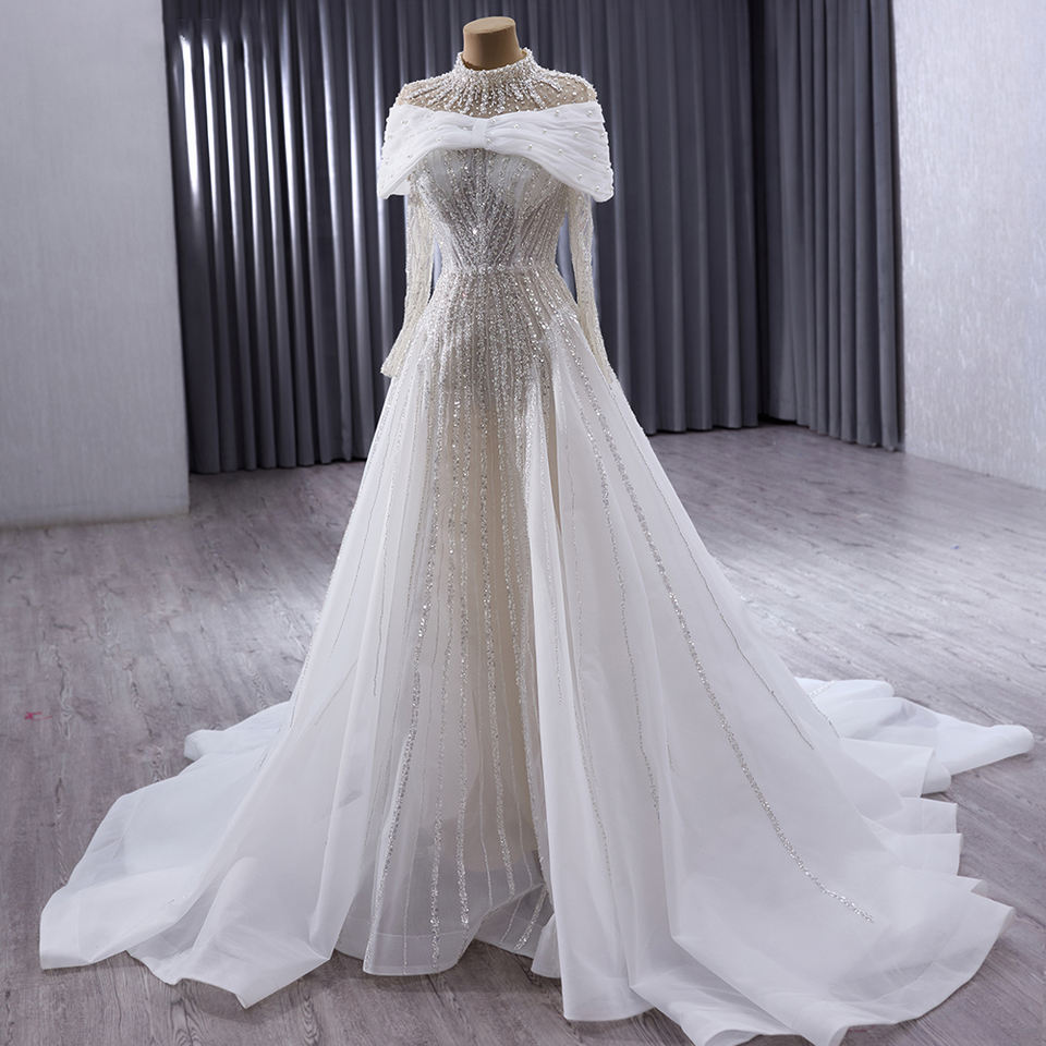 Jancember 241009 Luxury Sequins Beaded High Neck Muslim Two Wear Wedding Dresses