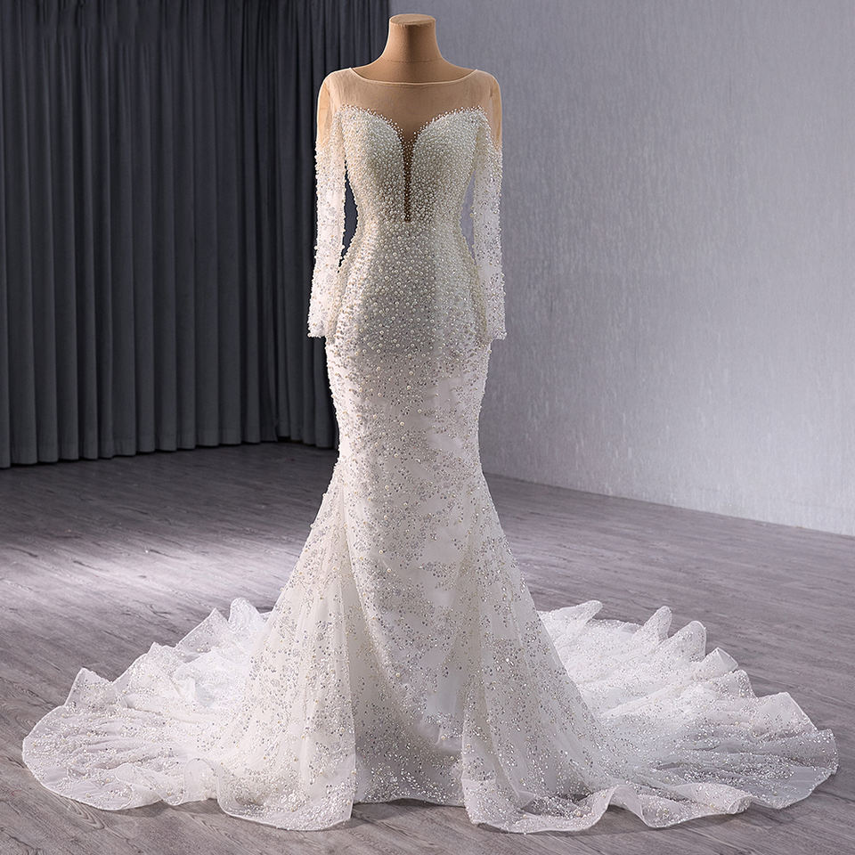 Jancember 241021 Beautiful Pearls Mermaid Slim Wedding Gowns Dresses for Girls