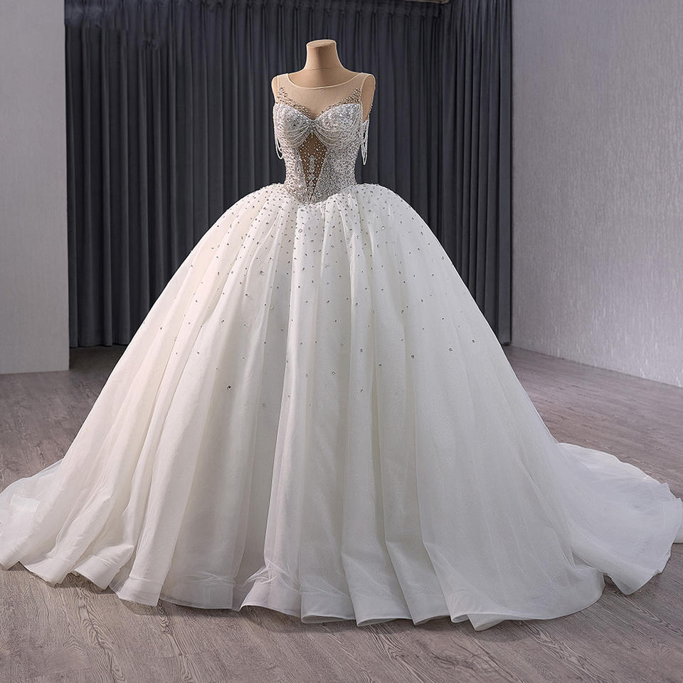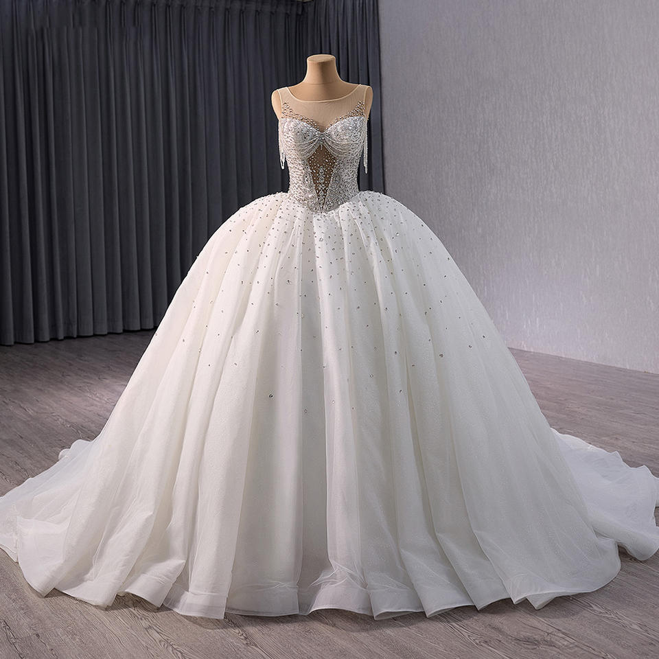 Jancember 241051 Crystal Sleeveless Tassel Empire Illusion Ball Gown Wedding Dresses