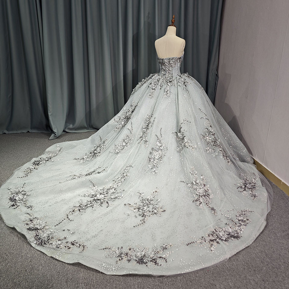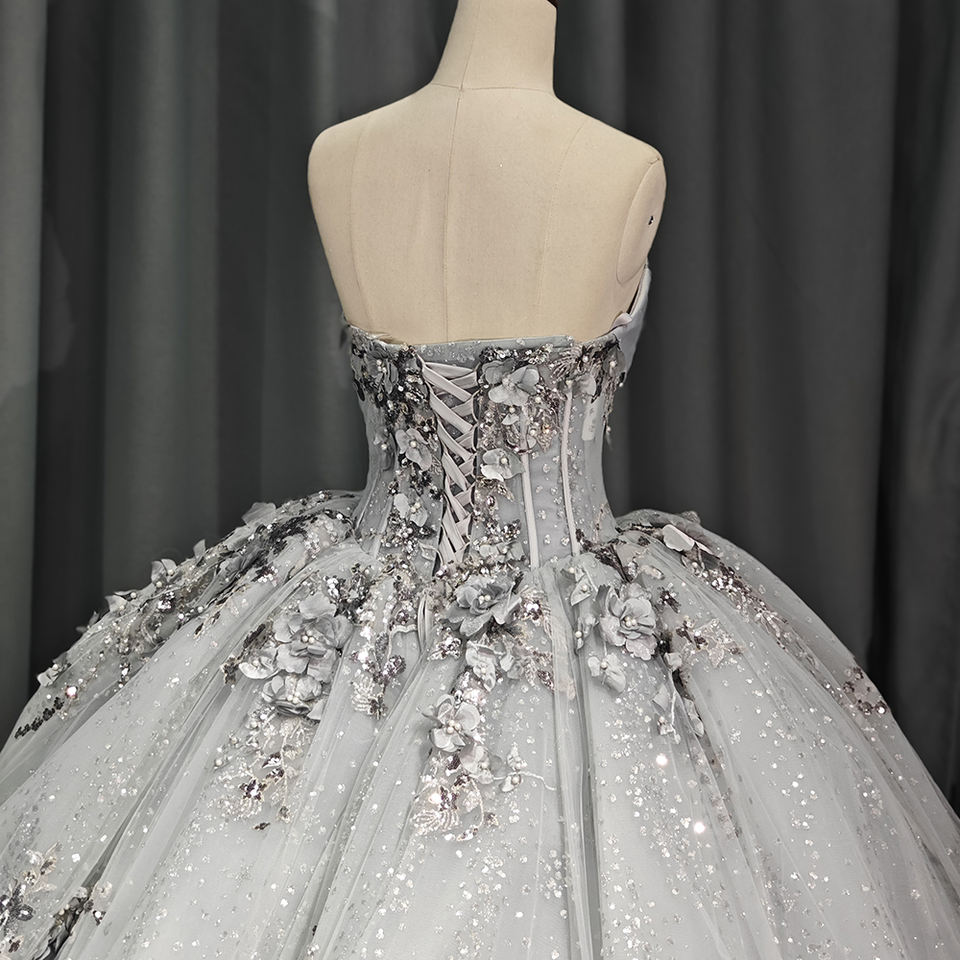 Jancember 6521 Shiny Silver Mexican Sweetheart Quinceanera Flower Dresses Vestidos De 15 Anos