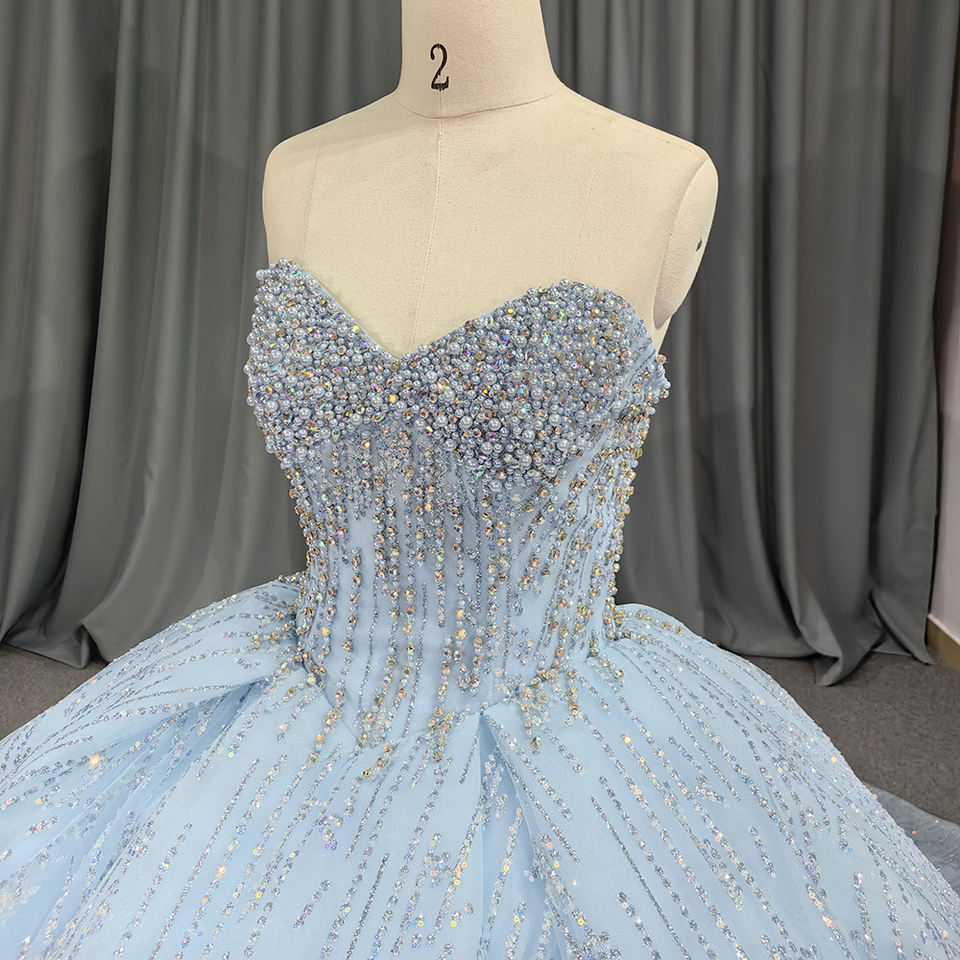 For Jancember 6631 Empire Blue Evening Dress Ball Gown Natural Beaded Appliques Crystal Sweetheart Pearls Sequins for Parties