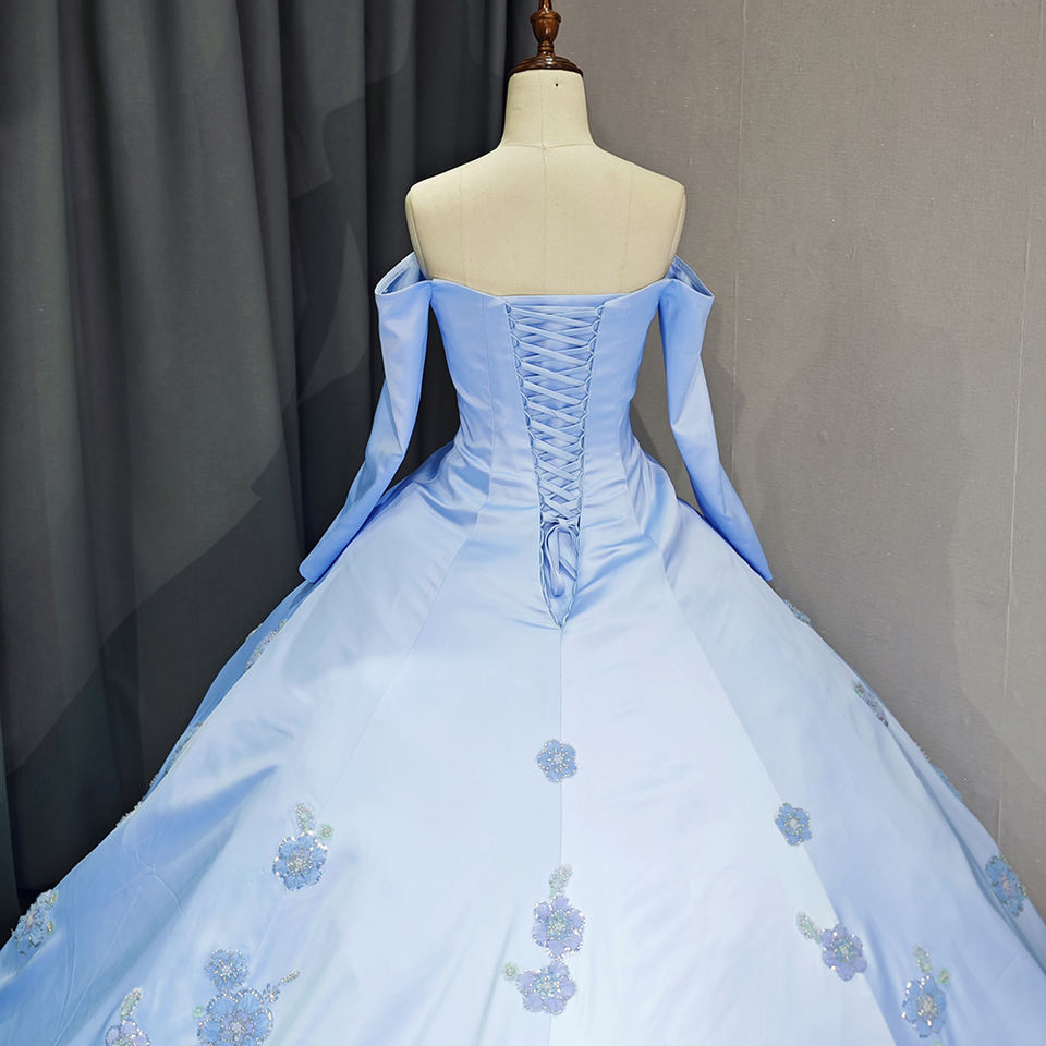 Jancember 6705 Vintage Blue Evening Flower Vestidos De Noche Elegantes Dresses With Sleeve