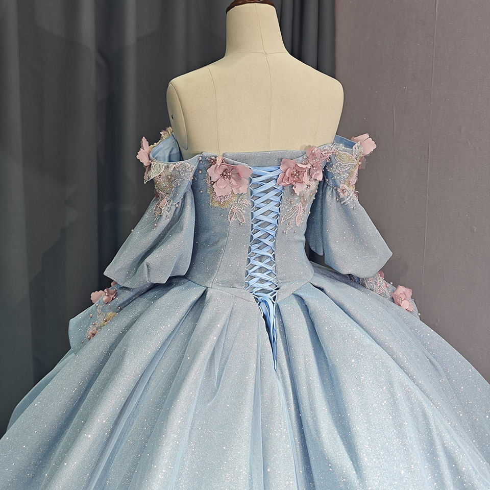 Jancember 6751 Vintage Blue Court Style Appliqued Flower Evening Dresses