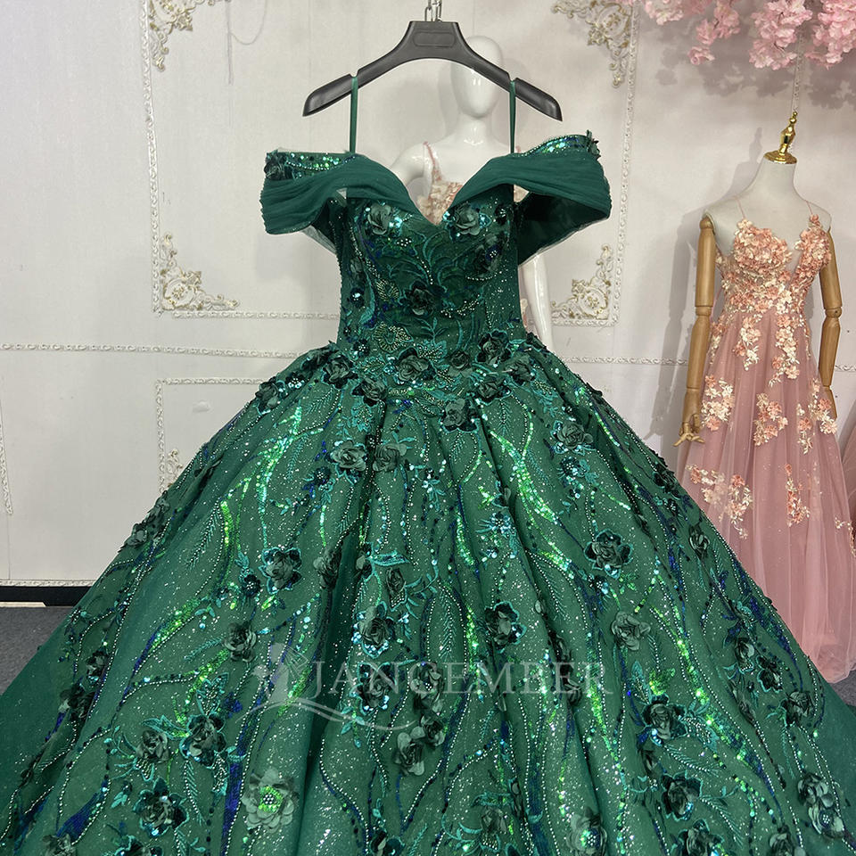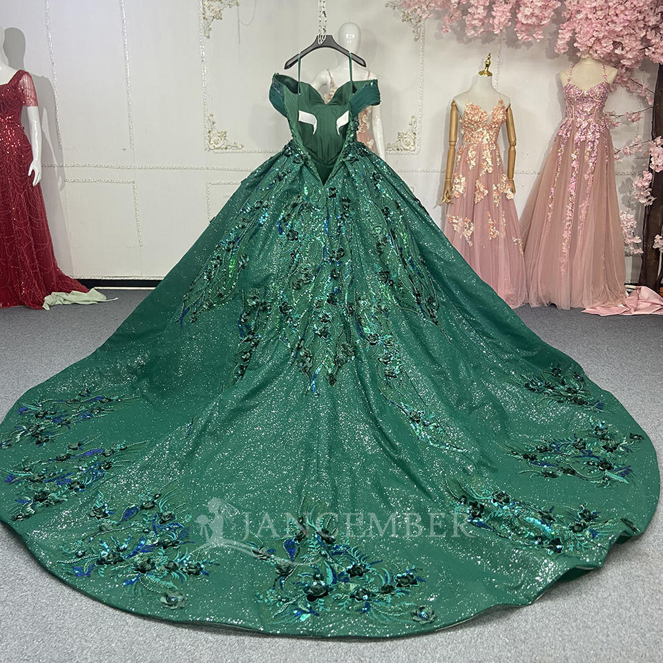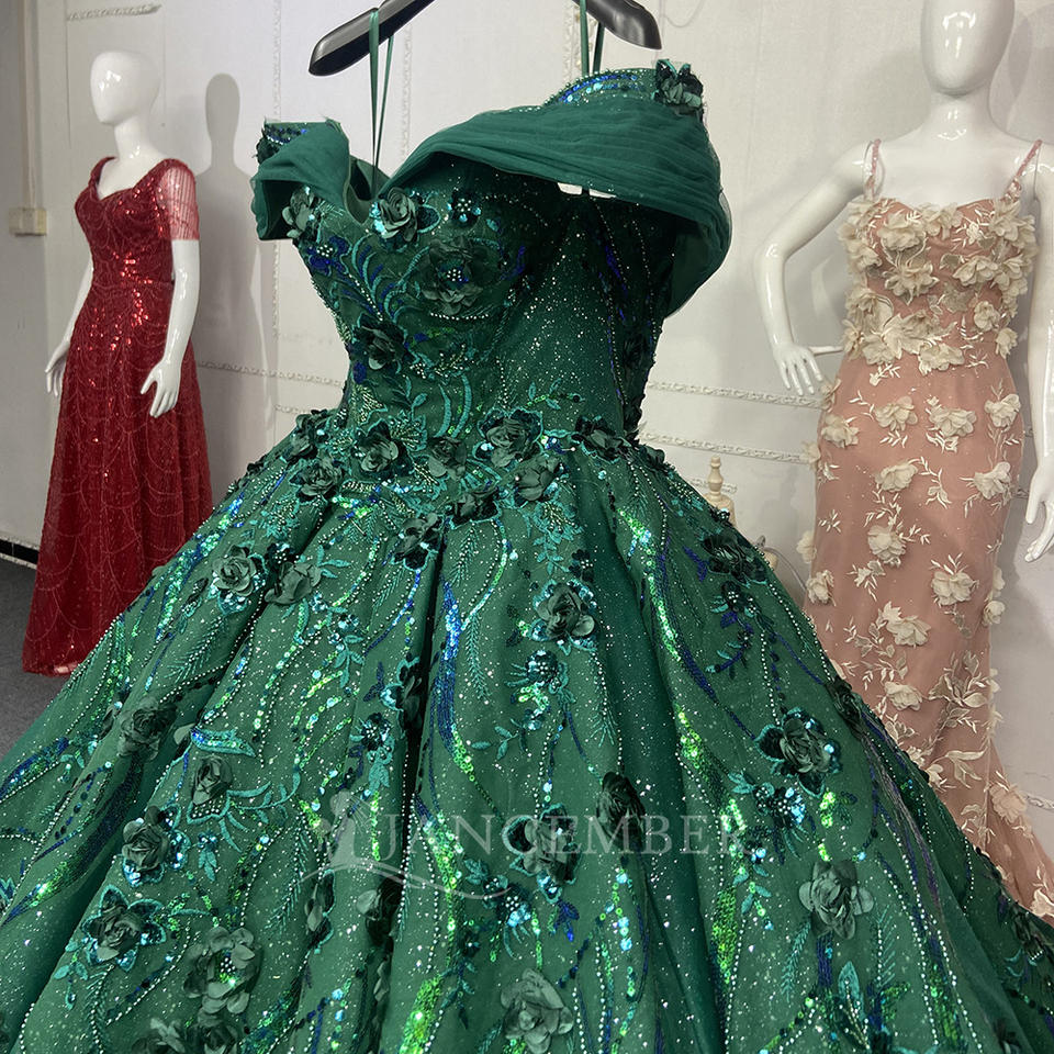 Jancember ANY130 Luxury Dark Green Sweetheart Quinceanera Evening Women's Dresses