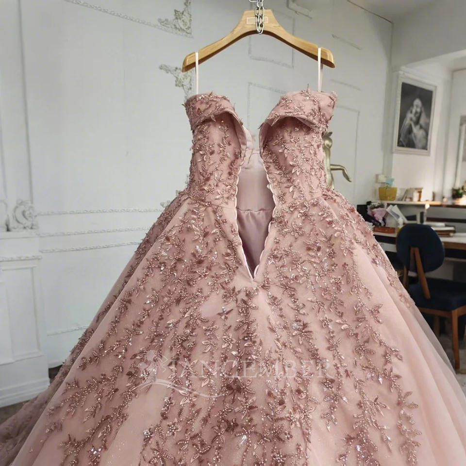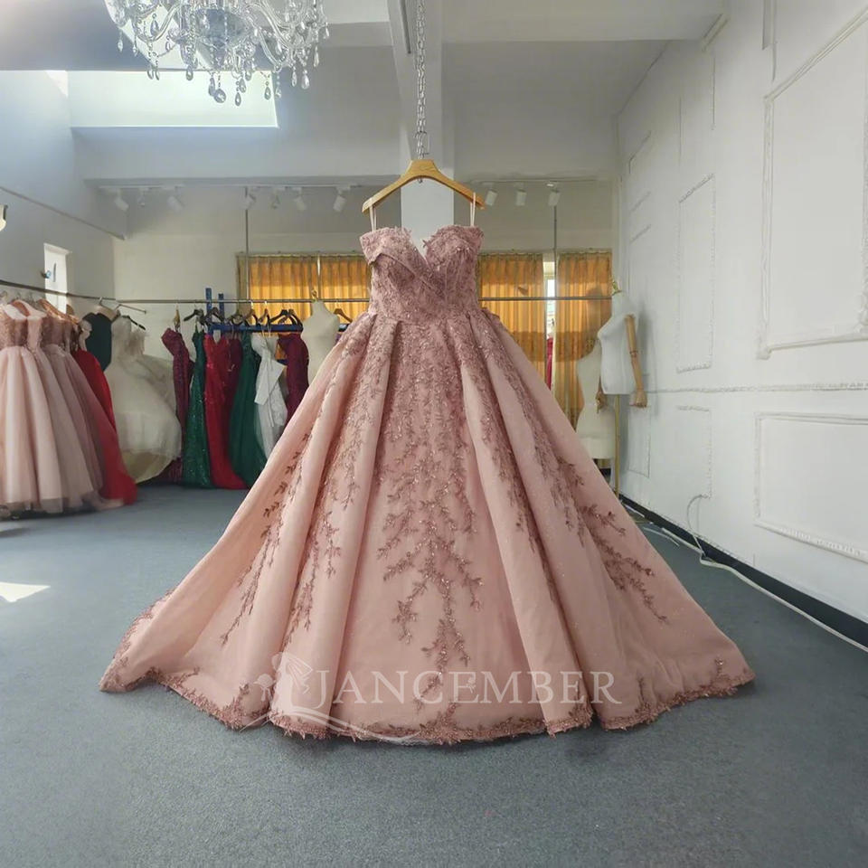 For ANY48 Glaromous pink Sweetheart Beading Appliques Crystal Party Evening Ball Gown Chapel Train Dresses for 15 Girls