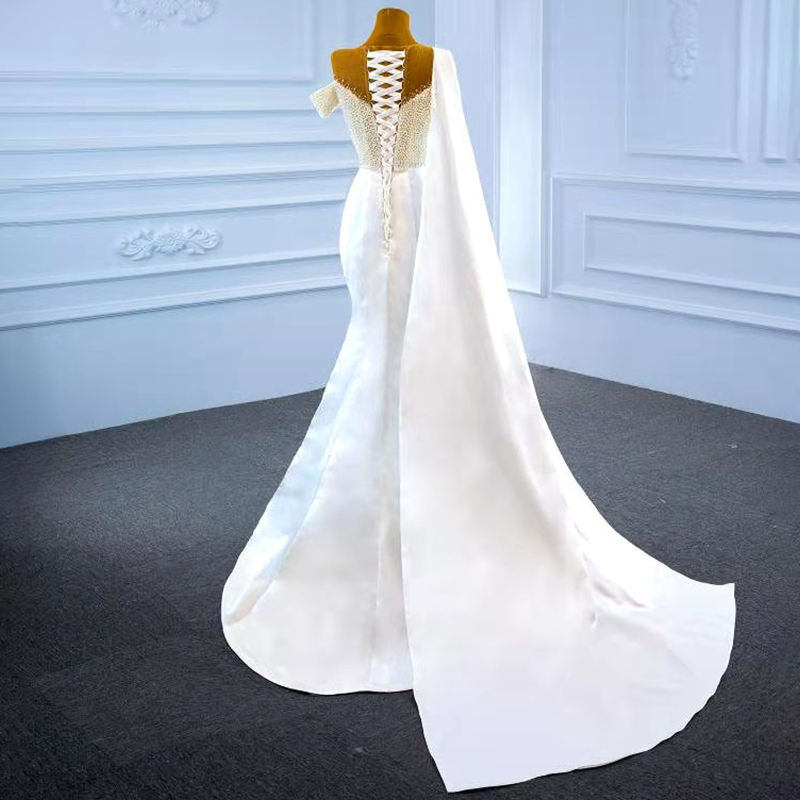 Jancember ARSM67238 Luxury Pearls One Shoulder Mermaid Tail Wedding Dress Bridal Gown