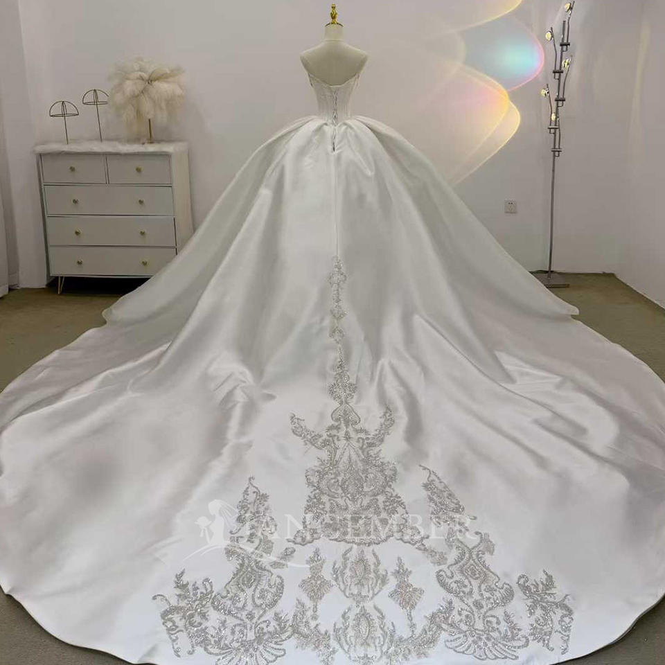 For JJ125 Modern Princess Sweetheart Lace Flowers Crystal Wedding Bridal Gowns Floor-Length Chapel Train Ball Gown Long