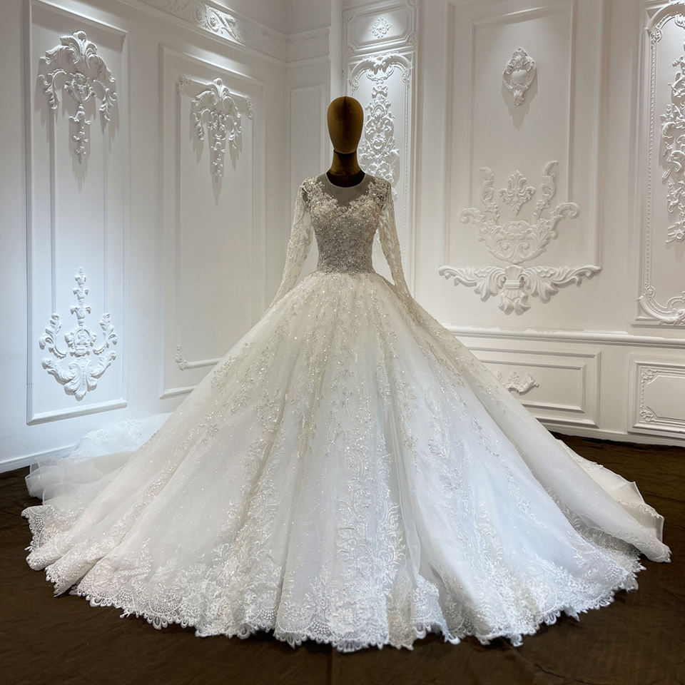Jancember LSCJ30 Embroidery Long Sleeve Bridal Wedding Ball Gown Dresses