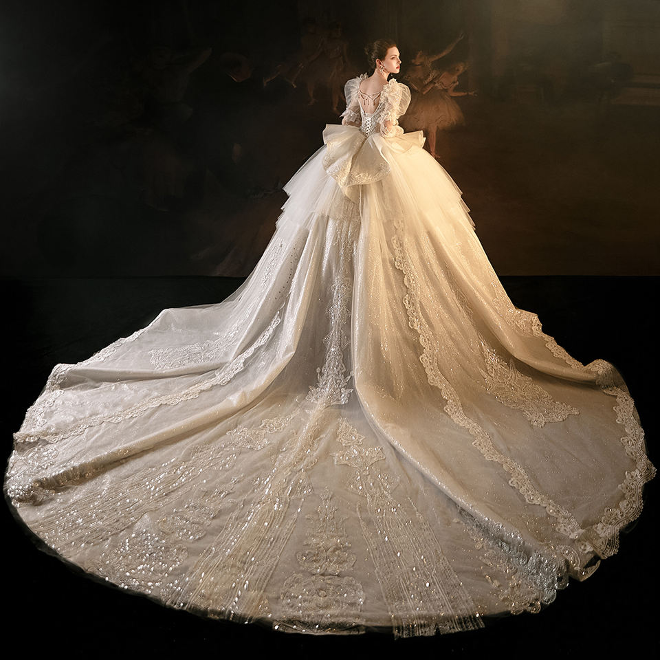 Jancember LSMX029 Bling Fantastic Wedding Bridal Gowns Dresses With Long Trains