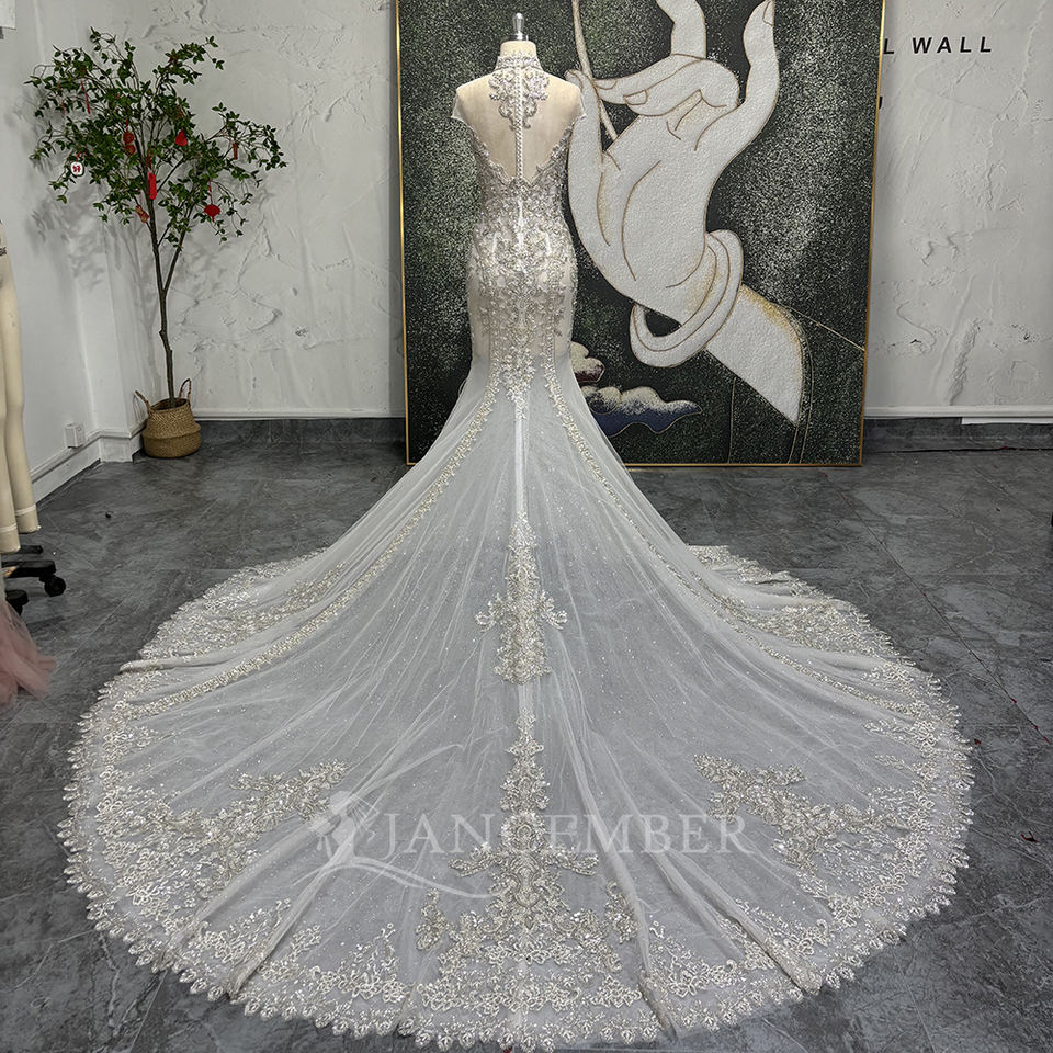 Jancember LSSG133 Luxury Crystal Sequins High Neck Mermaid Wedding Gowns Dresses
