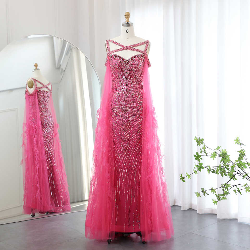 For Jancember LSZ468 Luxury Criss-Cross Fuchsia Mermaid Evening Party Gowns 3D Appliques and Crystal Decorated Natural Waistline