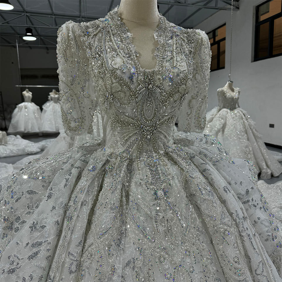 Jancember MN219 Bling Half Sleeve Empire Bridal Gaun Pesta Wedding Dresses