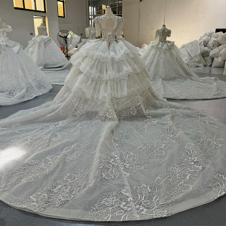 French Style Off-Shoulder Strapless Ball Gown Wedding Dress Tiered Customizable Materials for Brides & Mothers Chapel